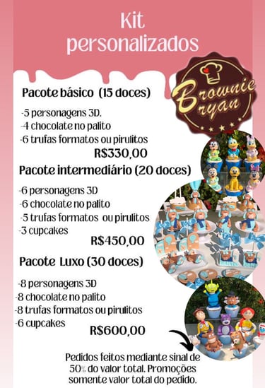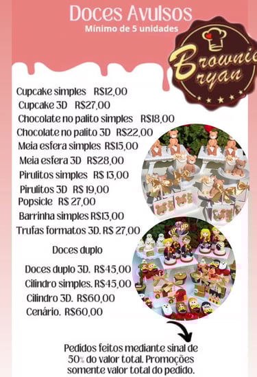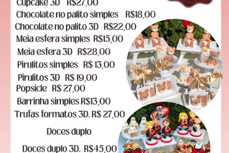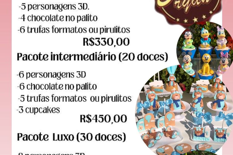 Oferecemos bolos e doces personalizados para todos os tipos de eventos.
